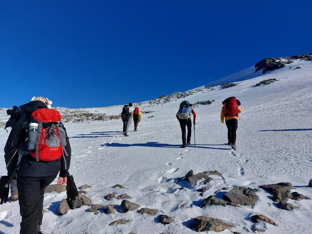 As we got up higher it became very icy and snowy so we got our microspikes on to reach the summit.