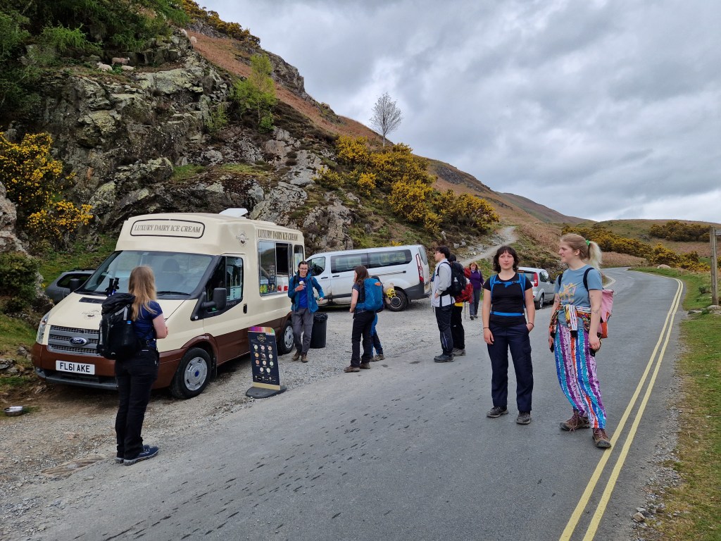 We arrived in Keswick and split into three different groups. Members climbed the several Wainwrights: Catbells, Causey Pike, and Skiddaw. We were fortunate to get some great views and weather, with one of our groups even stopping for ice cream halfway!