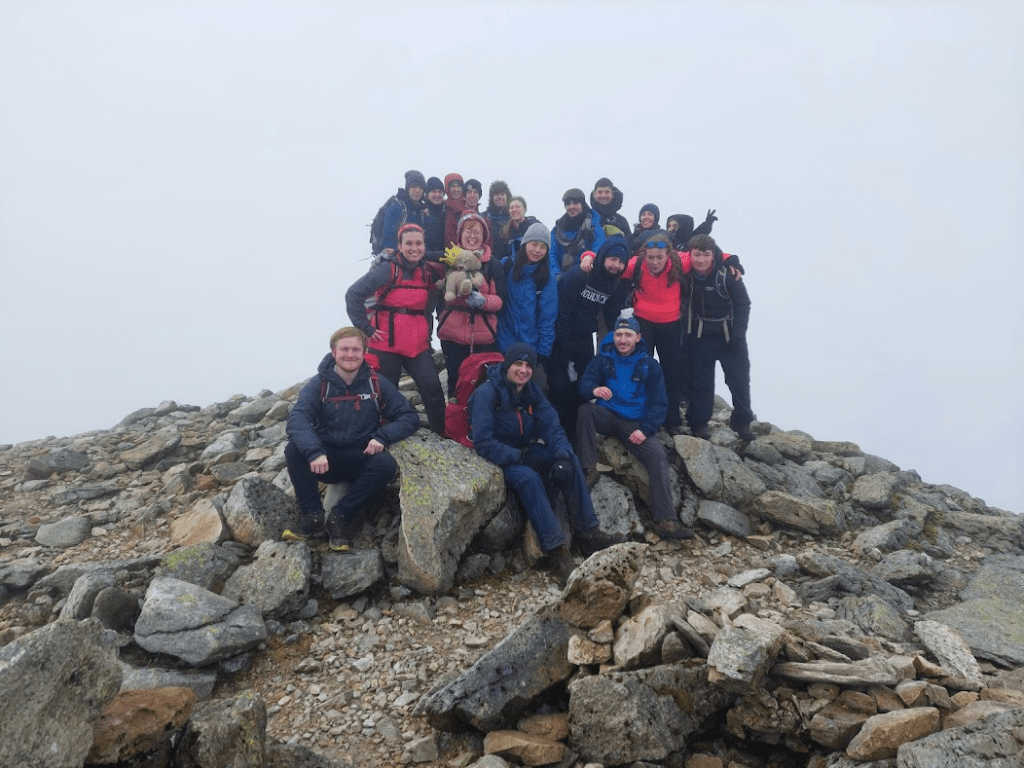 After awaking and slowly getting ready on Sunday morning the vans drove up to the Ogwen valley to enjoy the beauty of one of the most picturesque valleys in the country with Tryfan and the Glyderau to the south and the Carneddau stretching north towards the sea. After parking at Gwarn Goch Uchaf at the eastern end of Llyn Ogwen we set off up the well trodden path and despite some members best efforts we all managed to find the path taking us up past Ffynnon Lloer to ascend the eastern ridge of Pen yr Ole Wen admiring the views as we took on a couple of rocky steps before climbing into the cloud where we dropped just off of the summit of Pen yr Ole Wen (978m) for lunch. After lunch we continued on to the summit of Carnedd Dafydd (1044m) with some small breaks in the cloud revealing the stunning view north over towards Anglesey and the Menai straits. On the upper slopes of Carnedd Dafydd we encountered some very cool wind blown ice clinging to the rocks which which you could hear melting and falling as we walked across the loose rock. We the descended south back to Ffynnon Lloer and back down to the vans to then return to Newcastle.