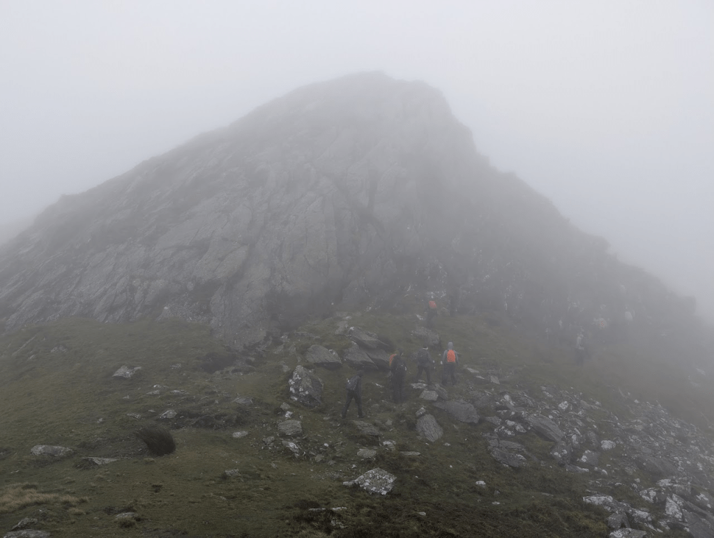 Waking up Saturday we set out into the wind and rain up Elidir Fawr (923m)